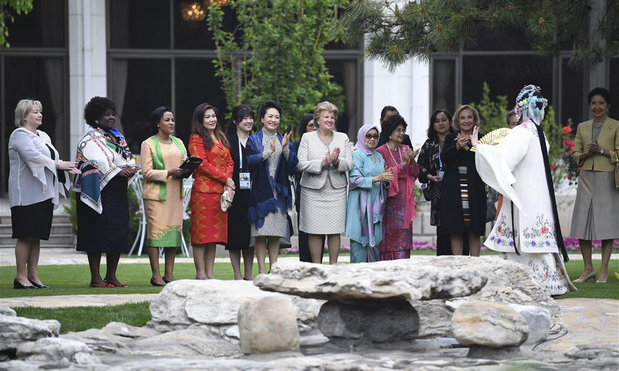 Peng Liyuan invites foreign leaders' spouses to watch Chinese opera/
