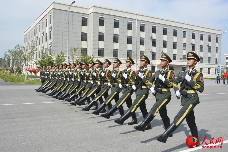 Honor guards train for the military parade. (People's Daily Online/Huang Zijuan) A grand military parade will be held at the Tiananmen Square, Beijing on Oct.