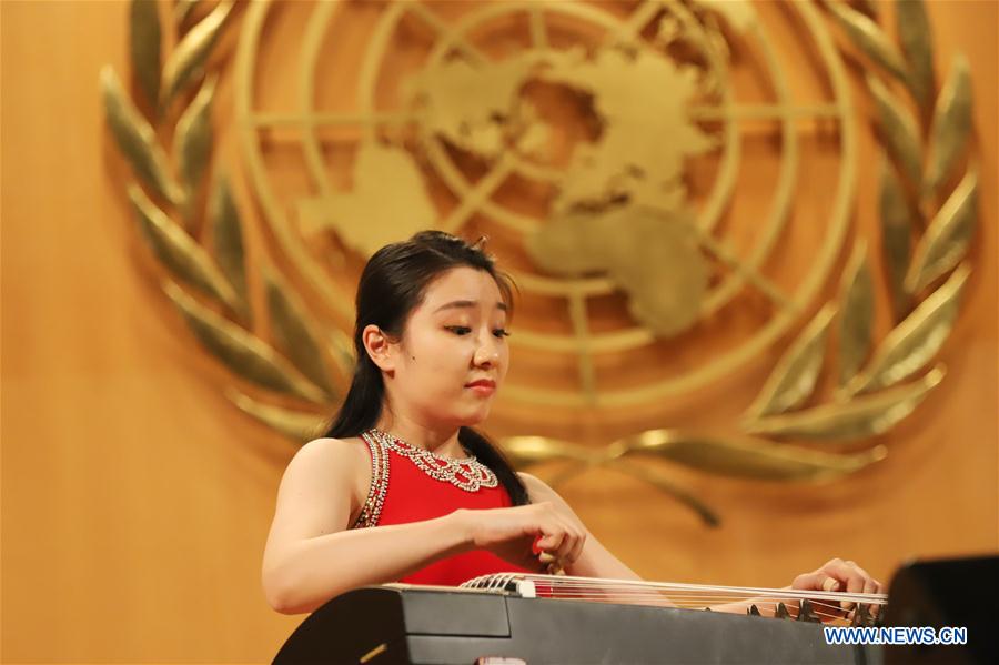 An artist performs during a concert held to celebrate the 70th anniversary of the founding of the People's Republic of China at the Palais des Nations in Geneva, Sept. 25, 2019.