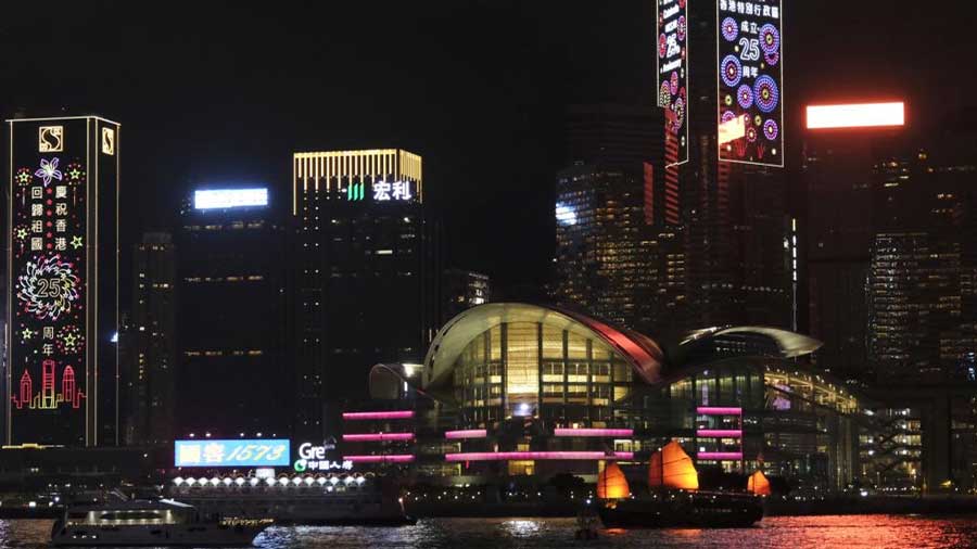 Victoria Harbor illuminated to celebrate 25th anniversary of Hong Kong's return/