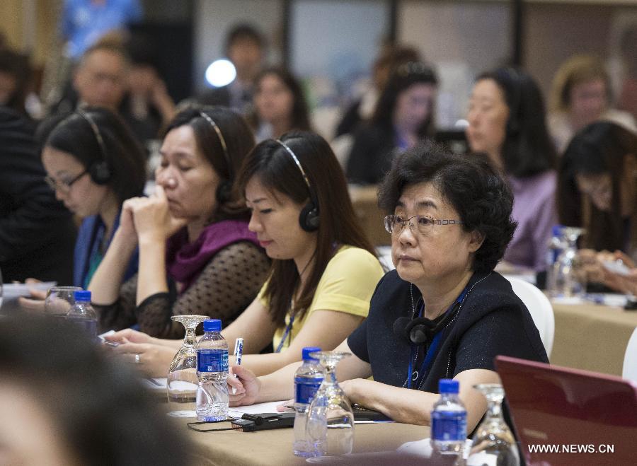 Representatives listen to a speech at the 2014 APEC Women and The Economy Forum in Beijing, capital of China, May 22, 2014. (Xinhua/Wang Ye)