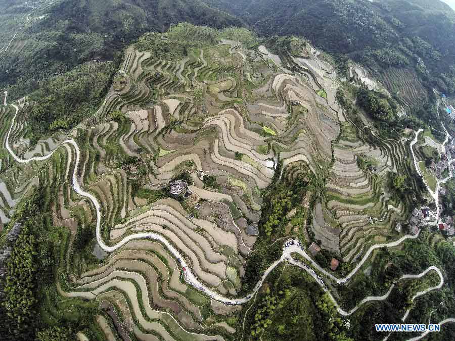 Photo taken on May 29, 2014 shows the terraced fields in Xiaozhoushan Township of Qingtian County, east China's Zhejiang Province. (Xinhua/Xu Yu)