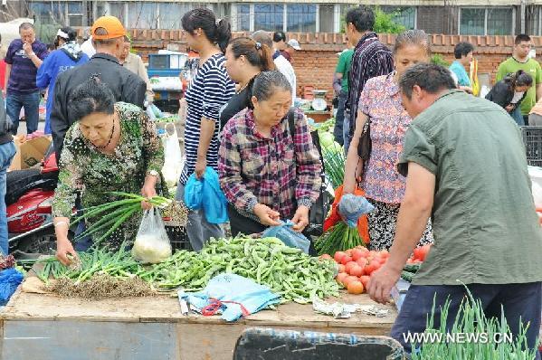 Consumers select vegetables at a market in Changchun, capital of northeast China's Jilin Province, June 10, 2014. China's consumer price index (CPI), a main gauge of inflation, increased 2.5 percent year on year in May, up from 1.8 percent in the previous month, official data showed on Tuesday. (Xinhua/Zhang Nan)