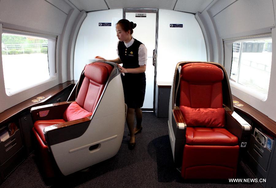 An attendant adjusts seats on a CRH train that runs on the Beijing-Shanghai High-Speed Railway in east China's Shanghai, June 17, 2012. The Beijing-Shanghai (or Jinghu) High-Speed Railway marked its third operation anniversary on Monday. The 1,318-kilometer high-speed railway that links Beijing, China's capital, and Shanghai, the largest city in the country, has seen more than 220 million passengers during the three years since its innitial operation on June 30, 2011. (Xinhua)