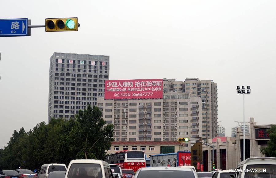 New buildings on sale are seen in Jinan, capital of east China's Shandong Province, July 10, 2014. Jinan on Thursday lifted its three-year home purchase restrictions by allowing residents to buy more properties. (Xinhua/Zhu Zheng)