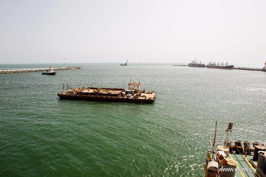 Photo taken on June 21, 2014 shows the Port Autonome of Nouakchott, known as the Port of Amitie, in Nouakchott, capital of Mauritania. The first three berths of the port were constructed by China from 1979 to 1986 as the second biggest project among China's assistance constructions in Africa. With the completion of Berth 4 and 5 in July, the port is expected to reach a throughput capacity of four million tonnes, nearly 90 percent of the import transportation of the whole country. (Xinhua/Li Jing)