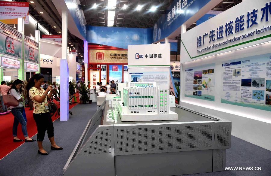A visitor takes photo of a model of nuclear power station at the 11th China-ASEAN Expo in Nanning, capital of south China's Guangxi Zhuang Autonomous Region, Sept. 17, 2014. New energy and high tech equipments attracted both exhibitors and visitors from home and abroad during the 11th CAEXPO held in Nanning from Sept. 16 to 19. CAEXPO takes place annually in Nanning and is expected to promote free trade between China and the ASEAN countries. (Xinhua/Zhang Ailin)