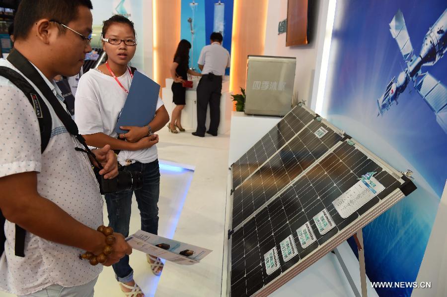 A visitor learns about a home-use solar power panel at the 11th China-ASEAN Expo in Nanning, capital of south China's Guangxi Zhuang Autonomous Region, Sept. 17, 2014. New energy and high tech equipments attracted both exhibitors and visitors from home and abroad during the 11th CAEXPO held in Nanning from Sept. 16 to 19. CAEXPO takes place annually in Nanning and is expected to promote free trade between China and the ASEAN countries. (Xinhua/Zhou Hua)