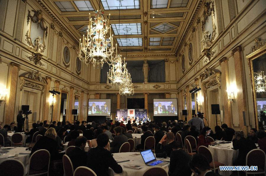 Photo taken on Nov. 18, 2014 shows the 4th Europe China Forum in Brussels, Belgium. (Xinhua/Ye Pingfan)