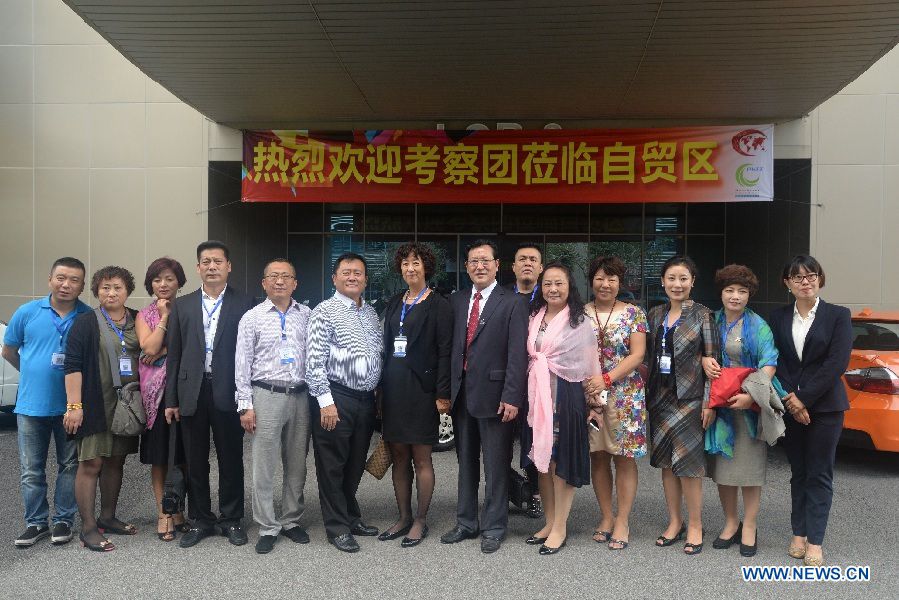 Zheng Jinbao (6th, L), President of Port Klang free trade zone, Xia Baowen (7th, R), Chairman of SM International Wholesale Center posed for a group photo with representatives of Chinese enterprises. (Xinhuanet)