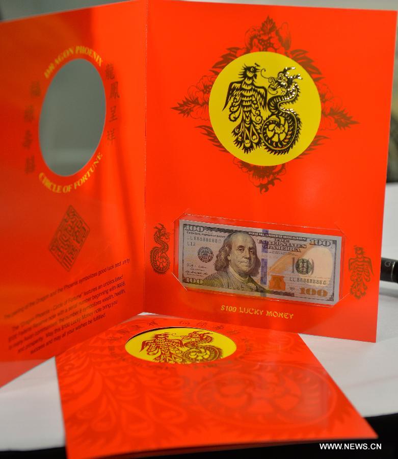 WASHINGTON, Dec. 2 -- The U.S. Treasury unveiled this year's one-dollar-note "Lucky Money" on Tuesday to welcome the upcoming Chinese Lunar New Year.