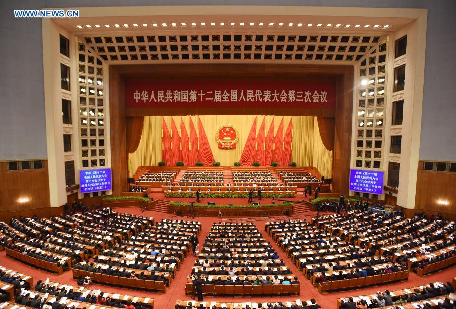 The closing meeting of the third annual session of China's 12th National People's Congress (NPC) is held at the Great Hall of the People in Beijing, capital of China, March 15, 2015. (Xinhua/Xie Huanchi)