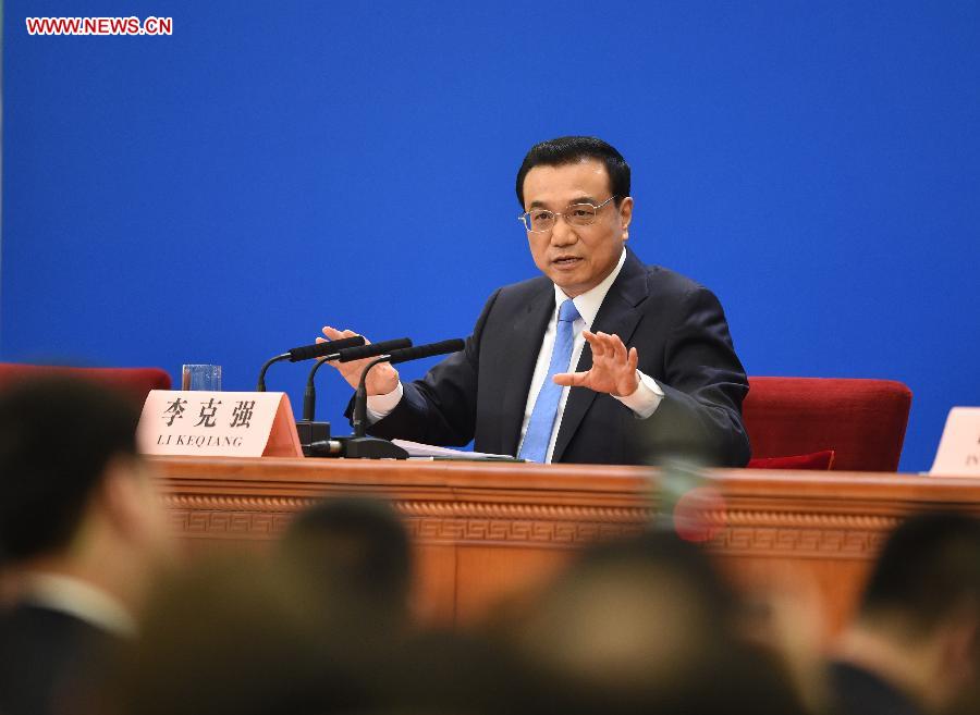 | Chinese Premier Li Keqiang speaks at a press conference after the closing meeting of the third session of China's 12th National People's Congress (NPC) at the Great Hall of the People in Beijing, capital of China, March 15, 2015. (Xinhua/Xie Huanchi) |