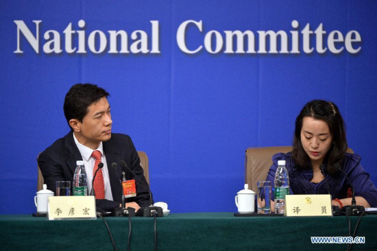 Robin Li is at a press conference during the third session of the 12th CPPCC National Committee in Beijing, capital of China, March 11, 2015. (Xinhua/Li Xin)