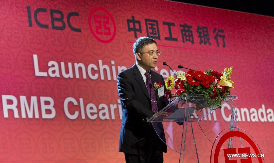 At the ceremony, ICBC Vice President Gu Shu said that the bank would fully utilize Canada's geographic and multiple time-zone advantages in support of the bank's 24/7 RMB clearing system.