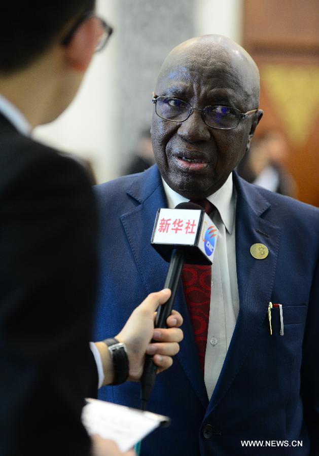 | Nigerian Foreign Minister Aminu Bashir Wali receives an interview from Xinhua in Jakarta, capital of Indonesia, on April 21, 2015. China's Belt and Road Initiative "has come at the right time," Nigerian Foreign Minister Aminu Bashir Wali said here on Tuesday. (Xinhua/Qin Qing) |