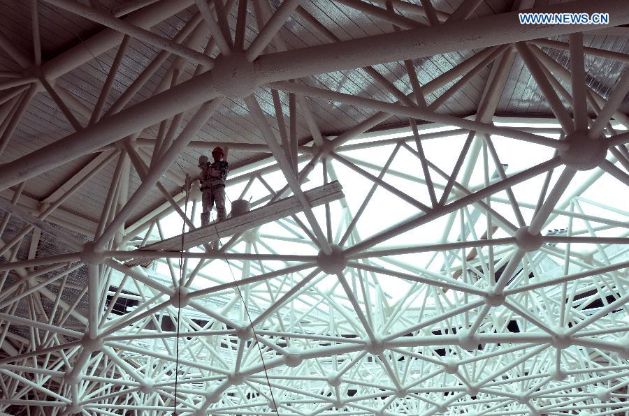 Laborers work at the construction site of the Lanzhou comprehensive bonded zone in Lanzhou, capital of northwest China's Gansu Province, May 8, 2015. The project is expected to be completed by the end of June. (Xinhua/Fan Peishen)