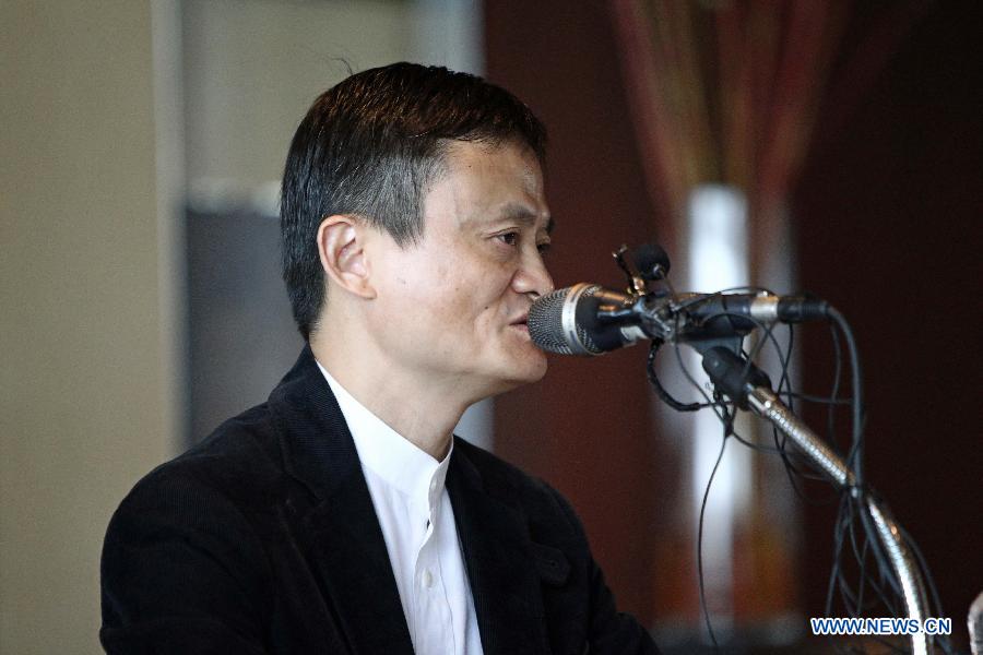 Jack Ma, founder and executive chairman of Alibaba Group, attends a news conference held in Seoul, capital of South Korea, on May 19, 2015. South Korea's finance ministry said Alibaba wants to make South Korea one of its global logistics hubs and it is seeking a partner for this endeavour. Alibaba Group is also working with Korea International Trade Association to initiate a youth internship program that will enable 100 Korean college graduates to work as intern at Alibaba Group's headquarters in Hangzhou. (Xinhua/Seongbin Kang)