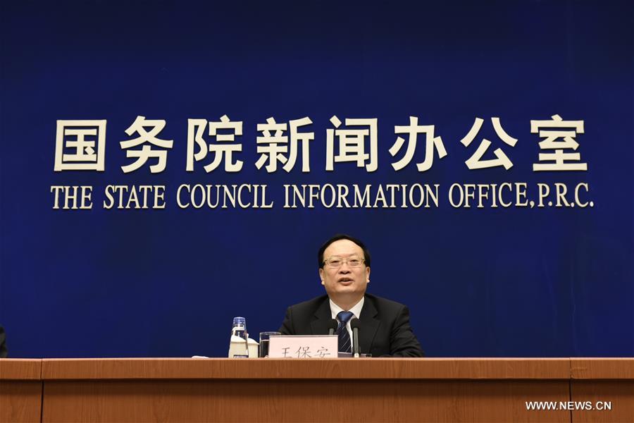 Wang Bao'an, head of the National Bureau of Statistics (NBS), speaks at a press conference in Beijing, capital of China, Jan. 19, 2016. China's economy grew 6.9 percent year on year in 2015, the slowest annual expansion in 25 years, but is still in line with the official target, according to the data from the NBS on Tuesday. (Xinhua/Chen Yichen)
