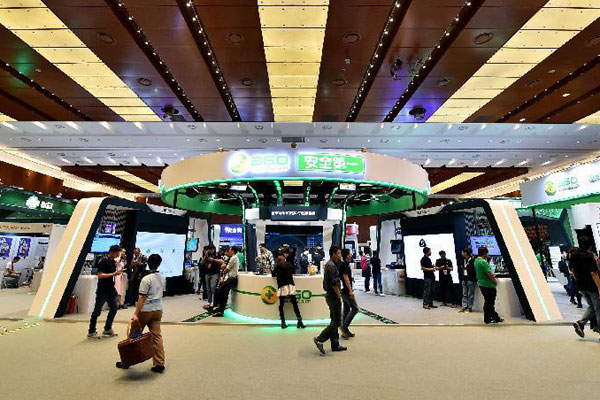 Participants view the exhibit zone of 2015 China Internet Security Conference in Beijing, capital of China, Sept. 29, 2015. [Photo: Xinhua]