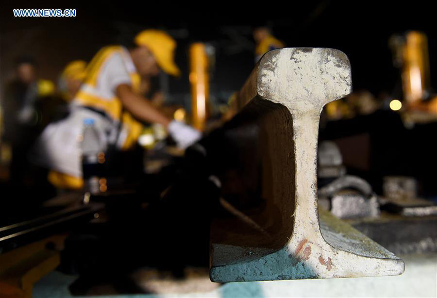 Railway staff members test newly-placed tracks at Caogusi circuit station of Zhengzhou Railway Signal Depot in Zhengzhou, capital of Central China's Henan province, on August 3, 2016. [Photo/Xinhua]