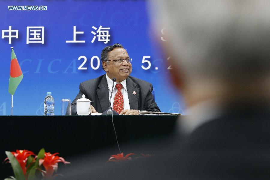 A.H. Mahmood Ali, minister of foreign affairs of Bangladesh, addresses a press conference after signing a memorandum of understanding about Bangladesh's becoming a member of the Conference on Interaction and Confidence Building Measures in Asia (CICA) in Shanghai, east China, May 20, 2014. (Xinhua/Zhang Yuwei)
