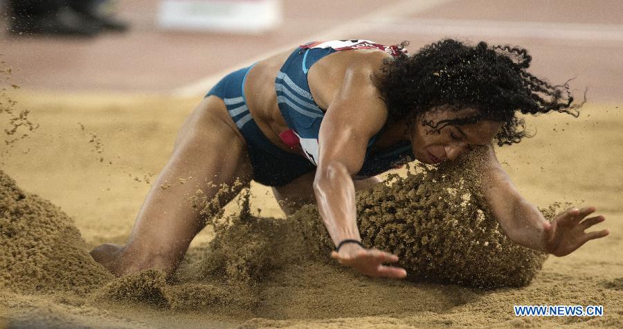 Tori Polk of the United States competes during the women's long jump at the IAAF World Challenge Beijing, China, May 21, 2014. Tori Polk took the fourth place of the event with 6.25m. (Xinhua/Fei Maohua)