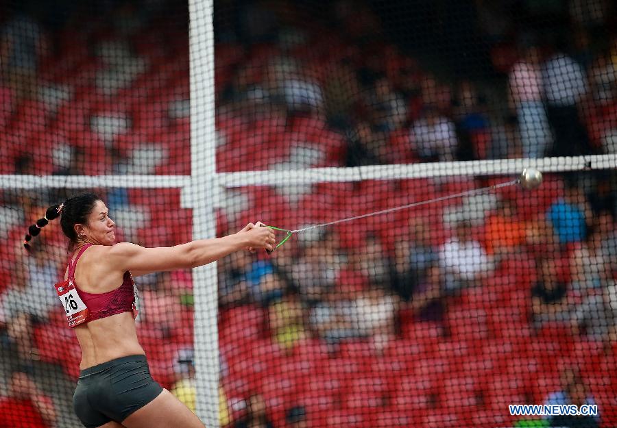 Tatyana Lysenko of Russia competes during the women's hammer throw at the IAAF World Challenge Beijing, China, May 21, 2014. Tatyana Lysenko took the seventh place of the event with 68.72m. (Xinhua/Li Ming)