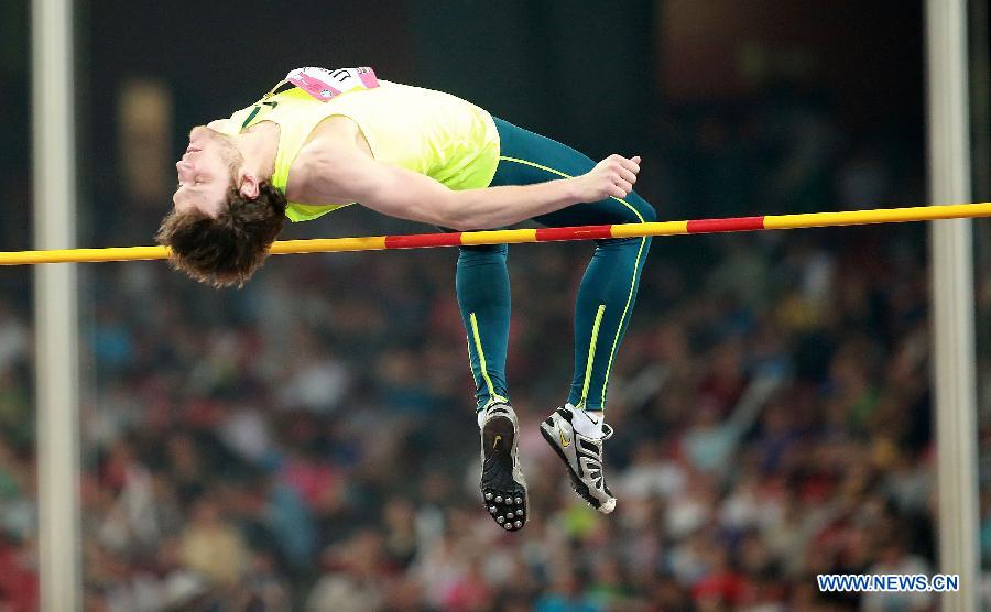 Ivan Ukhov of Russia competes during the men's high jump at the IAAF World Challenge Beijing, China, May 21, 2014. Ivan Ukhov claimed the title with 2.36m. (Xinhua/Li Ming)
