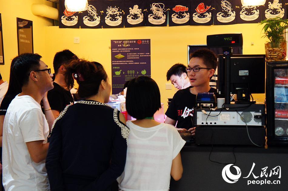 Customers wait in line at Zhang’s restaurant. (Photo/People.cn)
