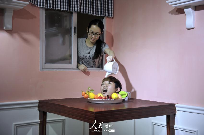 The largest 3D magic city in Asia opened in Guangzhou recently. Visitors can interact with the 3D paintings by posing with them. The photos are interesting because the 3D effect can give a transcending experience to visitors.(vip.people.com.cn/Gao Dianhua)