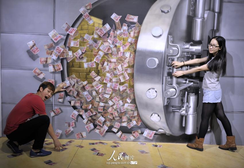 The largest 3D magic city in Asia opened in Guangzhou recently. Visitors can interact with the 3D paintings by posing with them. The photos are interesting because the 3D effect can give a transcending experience to visitors.(vip.people.com.cn/Gao Dianhua)