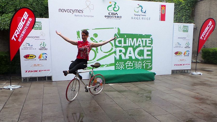 Ines Brunn performs stunts on bike. (People’ Daily Online/ Gao Yinan)
