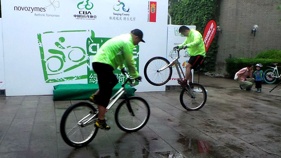 Chinese performers present stunts on bikes. (People’ Daily Online/ Gao Yinan)