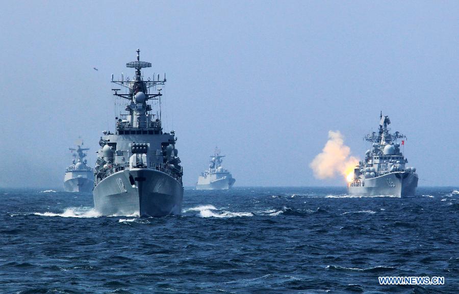 China's Ningbo missile destroyer fires anti-submarine missile during the China-Russia joint naval drill on East China Sea, May 24, 2014. The three-day drill "Joint Sea-2014" ended successfully on Saturday. The Chinese and Russian navies staged exercises, including joint escort drill, joint aircraft identification exercise and air defense and maritime assault drills. (Xinhua/Zha Chunming)