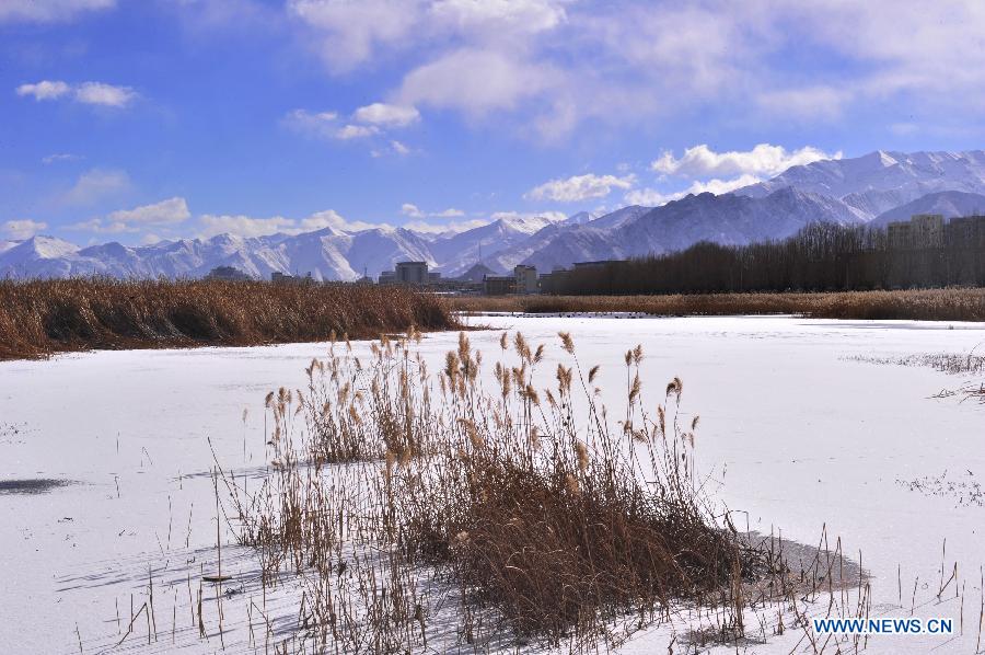 Photo taken on Jan. 12, 2014 shows the scenery of Lalu Wetland Reserve in Lhasa, capital of southwest China's Tibet Autonomous Region. According to a survey released on Wednesday by the regional forestry department, Tibet has seen an increase of wetland by 524,200 hectares in the past decade thanks to dedicated conservation efforts, taking the region's total to 6.52 million hectares. (Xinhua/Liu Kun)