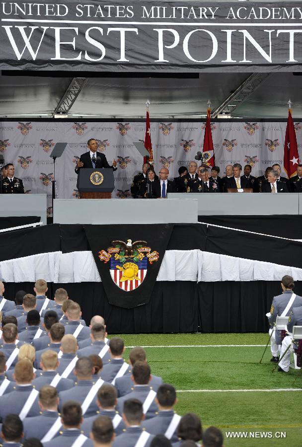 U.S. President Barack Obama (back 2nd L) attends the graduation ceremony at the United States Military Academy at West Point, New York, the United States, on May 28, 2014. Obama said here Wednesday that he believes in the foreseeable future, terrorism remains the most direct threat to America at home and abroad. (Xinhua/Wang Lei)