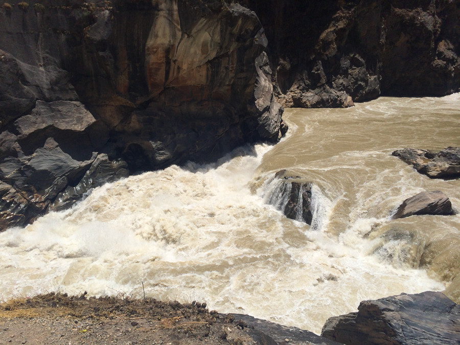 Photo taken on May 24, 2014 shows the amazing scenery in Hutiao Gorge. Hutiao Gorge is located in the upper reaches of the Jinsha River, to the northeast of Lijiang, in southwest China's Yunnan Province. The narrowest stretch in the river is only about 30 meters across. According to a legend, a tiger failed to jump across the river at that point. The river is about 29 kilometers long, reaching 3,790 meters in depth between Jade Dragon and Haba Snow Mountains, creating one of the most spectacular deep gorges in the world.(People's Daily Online/Huang Jin)