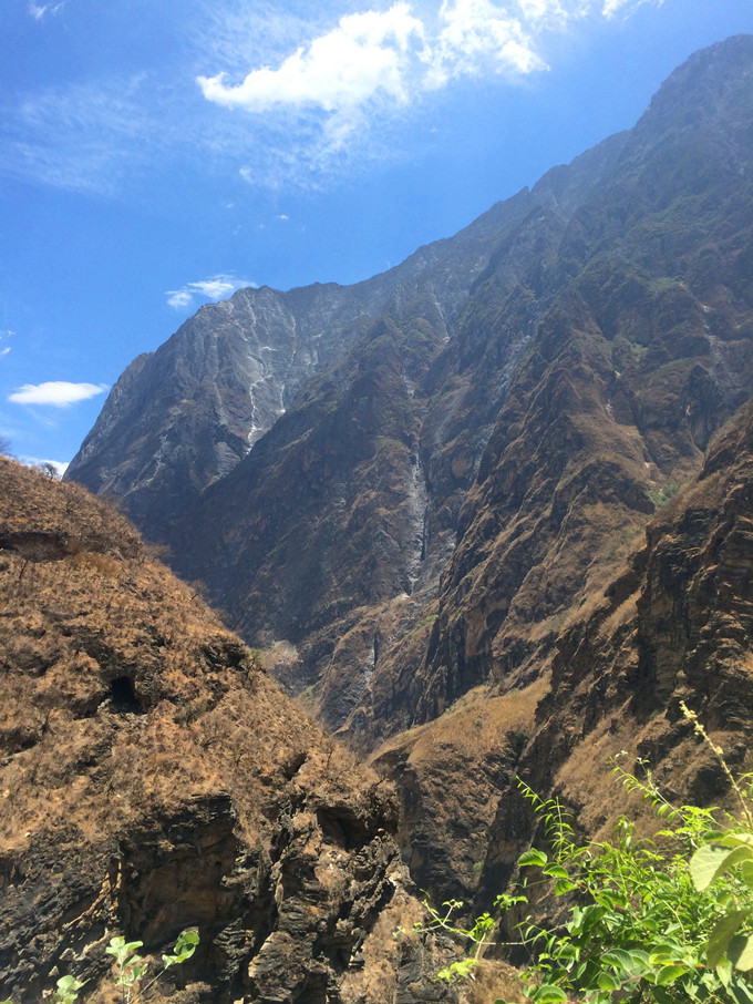Photo taken on May 24, 2014 shows the amazing scenery in Hutiao Gorge. Hutiao Gorge is located in the upper reaches of the Jinsha River, to the northeast of Lijiang, in southwest China's Yunnan Province. The narrowest stretch in the river is only about 30 meters across. According to a legend, a tiger failed to jump across the river at that point. The river is about 29 kilometers long, reaching 3,790 meters in depth between Jade Dragon and Haba Snow Mountains, creating one of the most spectacular deep gorges in the world.(People's Daily Online/Huang Jin)