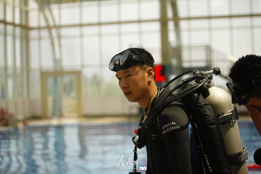 | All the six underwater anti-terrorist commandos are awarded with the Open Water Diver Certificate and the Underwater Anti-terrorist Rescue Diver Certificate.(vip.people.com.cn/Li Faxing) |