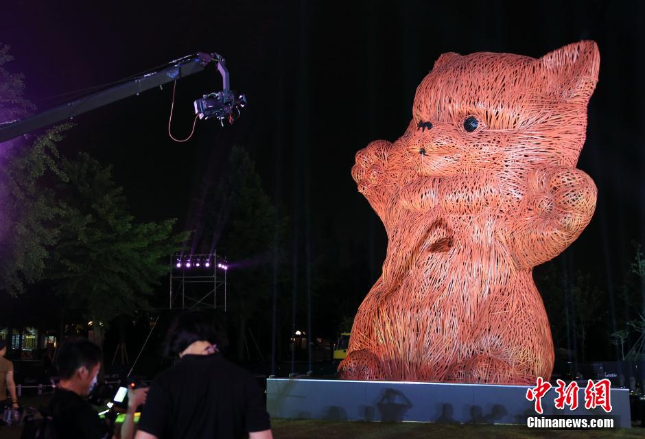 A giant pink cat, which is one of the latest creations from Holland designer Florentijn Hofman, is displayed in Shanghai, east China, May 30, 2014. Hofman is well-known for his creation "Giant Rubber Duck." (Photo Source: chinanews.com)