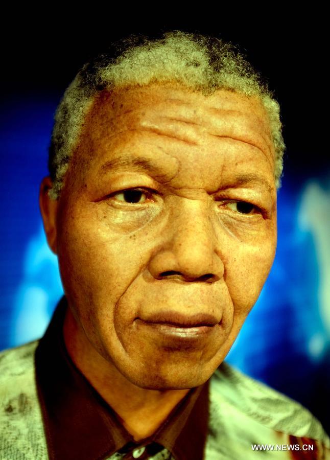 Photo taken on May 29, 2014 shows the wax figure of South Africa's former president Nelson Mandela at Madame Tussauds Wax Museum in Beijing, capital of China. London's Madame Tussauds Wax Museum set up its branch in Beijing this summer, and the museum will officially open to the public on May 31.(Xinhua/Wang Jianhua)