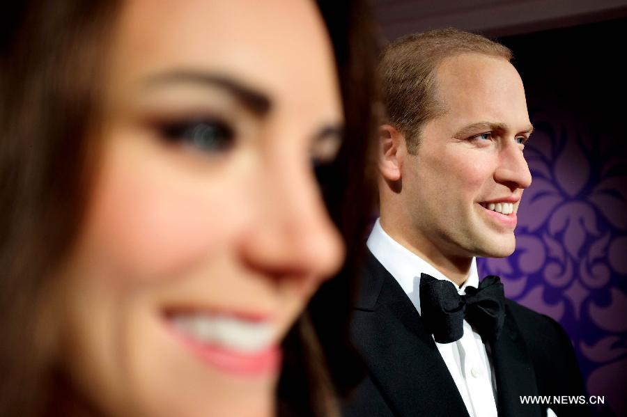 Photo taken on May 29, 2014 shows the wax figures of UK's Prince Willam and Duchess Catherine at Madame Tussauds Wax Museum in Beijing, capital of China. London's Madame Tussauds Wax Museum set up its branch in Beijing this summer, and the museum will officially open to the public on May 31.(Xinhua/Wang Jianhua)
