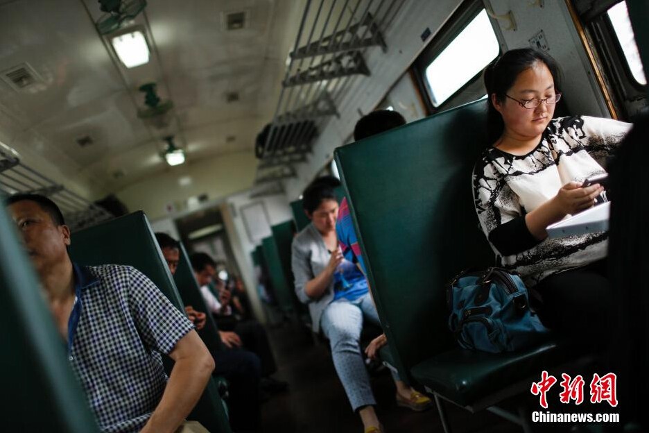 The train 6451 carries passengers from different place in the early summer. It is an old fashioned green train from Beijing to Tianjin. Compared with the crowded Beijing subway during the evening traffic peak, a 30-minute ride from the city centre to Daxing district only costs 2 yuan. Faster and comfortable with seats for everyone, it has become a common choice for many office workers in Beijing. The whole trip from Beijing to Hebei province and Tianjin only costs 8.5 yuan. The train starts off every day at 5:35 p.m., which meets the needs of office worker to travel from work to home. (CNS/ Yang Yang)