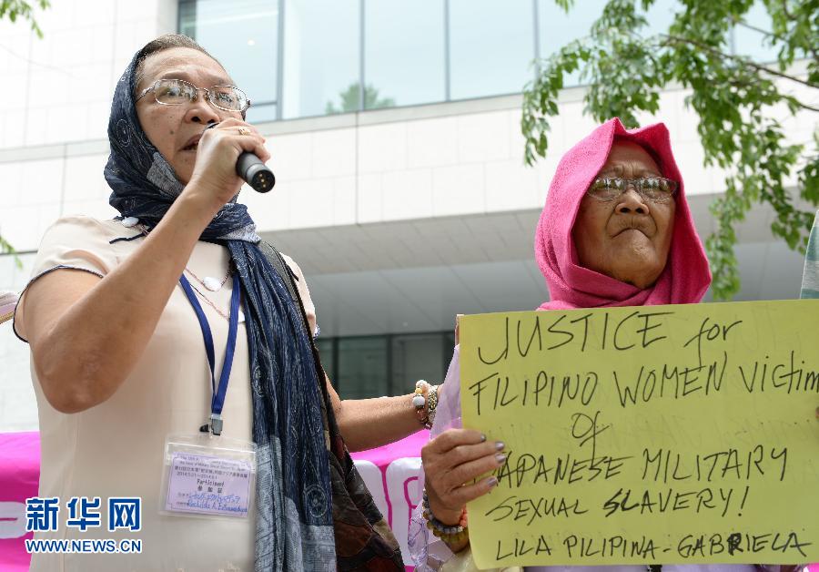 A Philippine group urges the Japanese government to make a more explicit apology and compensation to wartime sexual slaves during a demonstration in Tokyo on Monday, June 2, 2014. (Photo: Xinhua)