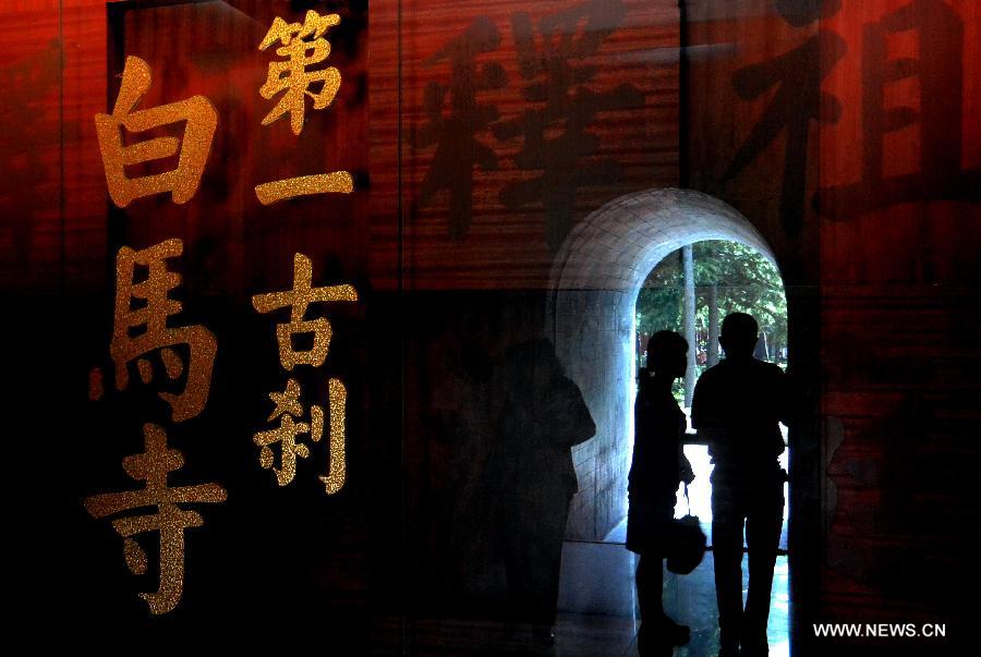 Tourists visit the White Horse Temple in Luoyang, central China's Henan Province, May 29, 2014. Luoyang, one of the cradles of Chinese civilization and one of the "Four Great Ancient Capitals of China", tries to integrate its tourism spots, an effort to build a "Chinese Culture City."(Xinhua/Wang Song)