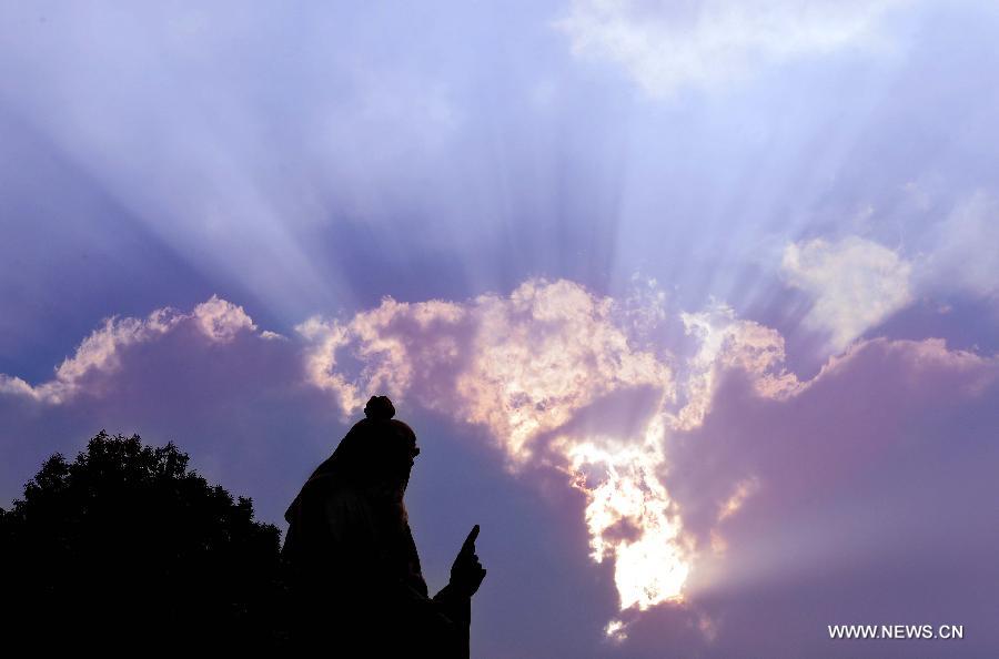 Laozi copper statue is seen on the Laojun Mountain in Luoyang, central China's Henan Province, Sept. 20, 2013. Luoyang, one of the cradles of Chinese civilization and one of the "Four Great Ancient Capitals of China", tries to integrate its tourism spots, an effort to build a "Chinese Culture City."(Xinhua/Wang Song)