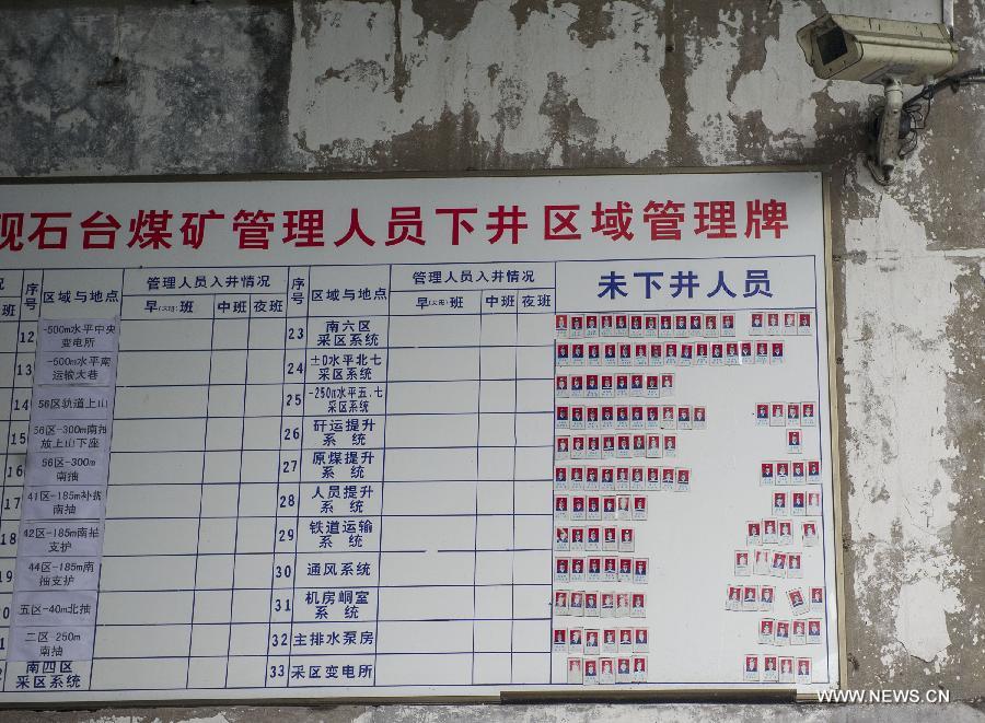 | Photo taken on June 4, 2014 shows the management board of the coal mine in which an accident claimed 22 lives in Chongqing, southwest China. Twenty-two people are confirmed dead in a gas incident which happened at 5:40 p.m.Tuesday at the Yanshitai Coal Mine in Wansheng District. Rescuers have retrieved the bodies of all the missing miners, the authorities said. A total of 28 miners were working down the shaft at the time of the accident. Six of them managed to escape, with two injured in the process. The coal mine belongs to the state-owned Nantong Mining Co., Ltd, which is the largest coal producer in Chongqing. (Xinhua/Chen Cheng) |