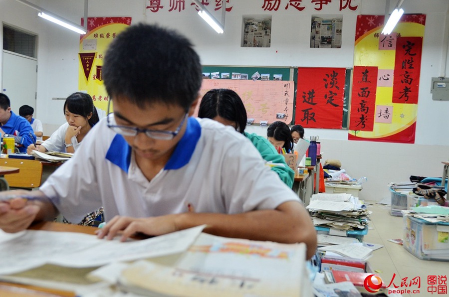 As there is only one week left for the College Entrance Examination (known as Gaokao), students in Guangzhou are making final preparations for the exam.
