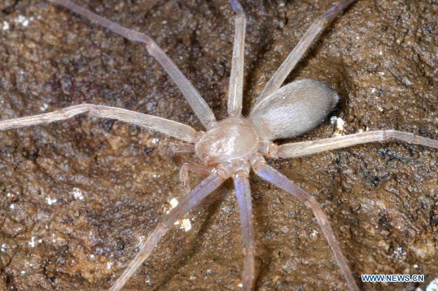 The picture released by the World Wildlife Fund (WWF) shows a new species of blind huntsman spider in Laos. A giant flying squirrel, a skydiving gecko and an eyeless cave-dwelling spider are among the 367 new species that have been discovered in the Greater Mekong region in the past two years, the World Wildlife Fund (WWF) said in a statement on Thursday. (Photo/Xinhua)